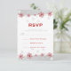 Placa de resposta/resposta RSVP de cinza vermelha prateada branca floco de neve, apresentando uma banda ondulada em cinzas prateadas com estrelas e flocos de neve elegantes vermelhos. Texto em cinza e vermelho. Um design de na moda perfeito para o seu casamento de inverno, dezembro ou Natal. Moderno e contemporâneo, mas adequado para um casamento tradicional. Esse elegante design de classe pode ser usado em outras ocasiões especiais, como noivados ou aniversários.