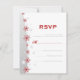 Placa de resposta/resposta RSVP de cinza vermelha prateada branca floco de neve, apresentando uma banda ondulada em cinzas prateadas com estrelas e flocos de neve elegantes vermelhos. Texto em cinza e vermelho. Um design de na moda perfeito para o seu casamento de inverno, dezembro ou Natal. Moderno e contemporâneo, mas adequado para um casamento tradicional. Esse elegante design de classe pode ser usado em outras ocasiões especiais, como noivados ou aniversários.