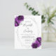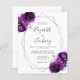 Este elegante convite de casamento moderno apresenta um quadro geométrico de prata decorado com flores roxas e prateadas em fundo branco. O texto personalizável combina a escrita manual imétrica de cinzas prateadas, a placa de cobre e as fontes itálicas. O verso é branco sólido.