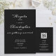Os convites para casamento todo-o-em-um preto e branco elegantes apresentam os seus detalhes de convite na frente e os seus detalhes de RSVP e o código QR para o seu website de casamento no verso para que os convidados possam facilmente aceder ao seu website para mais detalhes. Certifique-se de verificar seu pedido duas vezes antes de adicioná-lo ao seu carrinho, pois o que você vê na tela é o que será impresso. O Serviço de Design ao Vivo pode ajudá-lo com o layout do seu design, se necessário. Este design está disponível em papel de orçamento em nossa coleção, assim como em pedaços de MATCHING.