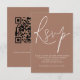 Fazer de RSVP Marrom de Casamento QR de Script Minimalista é conveniente que seus hóspedes respondam digitalizando seu código QR, levando à página de resposta do site de casamento. O RSVP está em um script de conjunto elegante e personaliza facilmente o resto das palavras para você e muda o URL de exemplo no modelo para o seu para criar automaticamente seu código QR no verso. Você também pode alterar as cores do texto e do plano de fundo se desejar, por meio da opção personalizar mais para corresponder ao seu tema de cor do casamento. Se precisar de ajuda com isso, por favor, me envie uma mensagem.