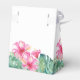 Estas caixas de favores de casamento apresentam uma parte inferior das folhas de palma de aquarela e flores de hibisco rosa. As palavras "Obrigado" são definidas em tipografia de script de tendência. Use os campos modelo para adicionar seus nomes personalizados ou monograma com data de evento. Para ver toda a suíte de casamento de destino tropical visite www.zazzle.com/dotellabelle