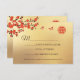 A cereja vermelha floresce sobre um fundo dourado e um símbolo vermelho de felicidade dupla. Cartão de Casamento Chinês RSVP.