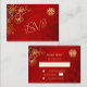 A cereja da linhagem floral de ouro floral floresce sobre um fundo vermelho brilhante e um símbolo de dupla felicidade dourada. Cartão de Casamento Chinês RSVP.