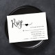 Cartões RSVP de casamento elegantes e únicos com pouco coração. Plano de fundo branco (pode ser alterado para qualquer cor) e RSVP de caligrafia de script preto. Iniciais de noiva e noiva na parte de trás da carta. Local para adicionar a opção MENU. Modelos editáveis para que você possa adicionar seu próprio texto. Perfeito para qualquer tema ou época do ano. Adicione estes cartões de resposta aos seus convites. Consulte a coleção.