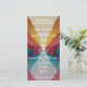 Este vibrante e elegante convite de casamento combina estilo minimalista com uma explosão de cor radiante, fazer perfeito para casais que buscam uma estética lúdica, mas refinada. O ponto focal é um espectro brilhante de matizes quentes e legal que irradiam para fora, criando um design captivador do arco-íris, simbolizando unidade e alegria. Um arco vermelho luxuoso com uma gema central cintilante adiciona um toque de glamour e sofisticação. A tipografia limpa e moderna é colocada com gosto no centro, enquadrada pelos raios coloridos, criando um equilíbrio entre diversão e formalidade.