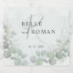 Este design moderno de bóho combina lindamente a coloração d'água da folhagem eucalipto em verde-sábio, que é na moda e romântico. Ele dá o tom perfeito para o seu casamento. Fácil de personalizar com suas próprias informações exclusivas.