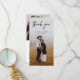 Casamento com Caligrafia Moderna Obrigado Cartão Fotográfico Este obrigado de casamento que você fotografa apresenta uma foto no verso e na frente. O obrigado que vocês vão para a caligrafia é no estilo preto moderno de monofilina. Uma segunda foto de casal aparece no verso juntamente com uma mensagem editável.