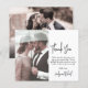 Orçamento, Elegante Mínimo Moderno Mínimo de Caligrafia Manuscrita Script Foto Barato Cartões de agradecimentos Casamento Barato em Preto e Branco. Na moda, modelo de cartão de casamento com 1 foto na frente e 1 foto no verso. Texto "Obrigado" em bonito letra tipografia de fontes ou escrita de caligrafia. Personalize com seu nome e obrigado sua mensagem. Se precisar de ajuda ou item correspondente, entre em contato com o designer!