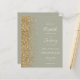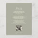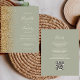A borda esquerda deste elegante convite de casamento moderno apresenta uma borda falsa de ouro. O texto personalizável combina manuscrito de marfim, fontes em copperplate e itálico em um fundo verde de sábio. O verso fornece espaço para detalhes do casamento em um fundo verde de sábio sólido, junto com um código QR que os convidados podem digitalizar para visitar seu site e RSVP.