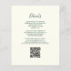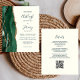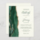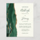 Economize o custo de imprimir e enviar cartões RSVP separados com este elegante convite de casamento de orçamento integral. A borda esquerda apresenta uma esmeralda verde aquarela agate border aparada com brilho dourado. O texto personalizável combina manuscrito verde, fontes em copperplate e itálico em um fundo de marfim. O verso fornece espaço para detalhes do casamento em um fundo de marfim sólido, junto com um código QR que os convidados podem digitalizar para visitar seu site e RSVP.