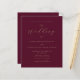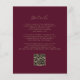 Este simples e moderno convite para o casamento mostra um texto dourado sobre fundo burgundy, com as palavras "O Casamento de" em elegante caligrafia. Adicione os nomes dos casais em serif e os detalhes do casamento em sans serif. O verso oferece espaço para detalhes do casamento, juntamente com um código QR que os convidados podem digitalizar para visitar seu site e RSVP, o que economiza o custo de impressão e envio de RSVP separados