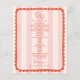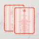 Ilustração de arte em linha padrão de folha de palma sobre fundo listrado rosa. Texto vermelho e borda recortada à mão.