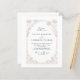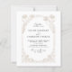 Um convite de casamento com caligrafia vintage elegante inspirado em fontes tradicionais. O design inclui um delicado arco floral desenhado à mão inspirado pela rellis de jardim com rosas, flores e folhas entrelaçadas. Perfeito minimalista e elegante para o casamento tradicional e de jardim.