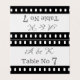 Personalize essas placas com o número da tabela ou remova e grave manualmente mais tarde se você comprar várias cópias. Adicione o plano de fundo da placa com a noiva e as iniciais do noivo em uma fonte de cinza esmaecida que flui. Estes cartões fazem parte da coleção do filme "O Casamento - Uma História do Verdadeiro Amor", cuja estreia mundial será a data do casamento.