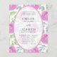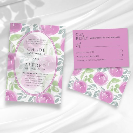 Você vai adorar este belo e moderno design de convite para casamento, perfeito para primavera e casamentos de verão. Apresenta elementos florais de cor aquosa impressionantes, incluindo rosas cor-de-rosa grandes e folhagem verde-luxuosa. Sua informação está elegantemente contida dentro de uma forma oval, criando um sofisticado efeito translúcido sobre o design. Ideal para casamentos românticos de jardim, este convite adiciona um toque de charme inspirado na natureza. Personalize com facilidade para criar o convite perfeito para o seu dia especial.