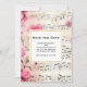 Salve o cartão de data com um design elegante e caprichoso. Folha de música decorada com um grande coração cor-de-rosa e rosas rosa e flores silvestres ao redor das bordas.