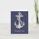 Cartão de agradecimento de casamento com tema náutico azul e marfim, feito em azul com arte vintage de uma âncora de navio de cor marfim com corda, na frente. Personalize o texto dentro e fora, para atender às suas necessidades. Produtos de casamento correspondentes estão disponíveis.
