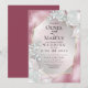 CONVITE DE CASAMENTO | Fundo luminoso rosa burgundy pálido cintilante com folhas de rosa luminosas, folhas de eucalipto, gipsófila e brilhos cintilantes. Moldura de terrário pérola dourada. O verso é uma cor coordenada complementar. Este design fica especialmente bonito na escolha de papel Pérola Cintilante. Personalize o texto, estilo de fonte, cor e tamanho. Criamos este modelo para facilitar a personalização com suas próprias informações. Este é parte de um conjunto completo de papelaria de casamento com papelaria de casamento, chá de bebê e outros eventos combinando. Obra de arte original por WhimsicalArtwork™.