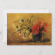 O convite para o casamento dos pais da noiva. Projetado de Vincent van Gogh, Vase com cravos vermelhos e brancos em fundo amarelo. Este convite de arte é especialmente bom para casamentos de férias.