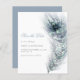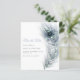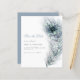 Um valor para o alternativo do ORÇAMENTO em tamanho menor de 4,5 x 5,6" de semirbrilho de 110 lbs, que é de espessura semelhante a um cartão postal (no entanto, não é adequado para uso como cartão postal). POR FAVOR, NOTE que existe UM por folha. Casamento Pavock Feather Salve A Data. Uma bela pena de pavão em tons de azul e de chocalho corre pelo lado direito e as palavras estão alinhadas à esquerda. Personalize facilmente o texto. Um azul empoeirado de coordenação está atrás.