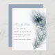 Casamento Da Pena De Orçamento Salve A Data. Um valor para o alternativo do ORÇAMENTO em tamanho menor de 4,5 x 5,6" de semirbrilho de 110 lbs, que é de espessura semelhante a um cartão postal (no entanto, não é adequado para uso como cartão postal). POR FAVOR, NOTE que existe UM por folha. Uma elegante pena de pavão no estilo vintage, em tons de azul e lacre, corre pelo lado direito e as palavras são alinhadas à esquerda. Personalize facilmente o texto. Um azul empoeirado de coordenação está atrás.