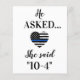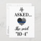 Convide seus amigos e família para comemorar seu dia especial com esses 'Ele pediu que ela dissesse: '10-4", linha azul fina, que a polícia temia casamento salvem os cartões postais. Estes cartões postais de convite para casamento de orçamento precisam ser enviados como cartões postais de tamanho excessivo, de modo que podem incorrer em despesas de correio, mas não precisam de um envelope ou etiqueta de endereço de retorno. Personalize com os seus nomes e todas as suas informações de casamento no verso. Esta coleção de casamento de polícias será favorita entre todos os policiais, esposas policiais e polícias. COPYRIGHT © 2020 Judy Burrows, Black Dog Art - Todos Os Direitos Reservados. Casamento Da Polícia De polícia Salva O Cartão-Postal De Data