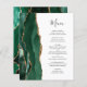 A borda esquerda deste elegante cardápio moderno de casamento apresenta uma esmeralda verde aquarela agata borda com falsa brilho dourado. O texto personalizável combina o script de escrita manual de cinzas de carvão branco e as fontes de impressão em um fundo branco. O verso apresenta um design emerald verde e dourado.