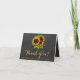 Modelo de cartão de agradecimento de casamento rústico elegante no outono em um fundo de quadro-negro de giz cinza escuro com belos buquês de girassóis. Preencha suas informações nos espaços, você pode optar por personalizá-lo ainda mais, alterando as fontes e as cores das letras. ---- O convite é adequado para casamentos rústicos no campo, elegantes de verão ou outono. --- Se precisar de ajuda para personalizá-lo, por favor entre em contato!