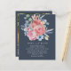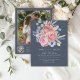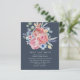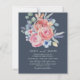 Elevem sua estacionária de casamento com este moderno modelo de convite, mostrando trabalho de arte de cor d'água original pintada à mão de rosas cor-de-rosa macia, azul empoeirado e cor de pêssego, e eucalipto verde sábio. Colocada contra um rico fundo azul profundo, combina elegância romântica com encanto rústico. Ideal para casamentos de vassoura, jardim ou ao ar livre, este design totalmente personalizável permite personalizar nomes, datas e detalhes de eventos — criando uma primeira impressão exclusiva e uma manutenção de eterno.