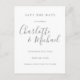 Projetado para coordenar com a nossa coleção de casamento Signature. Apresentando nomes de estilo de assinatura, esta cinza elegante e branca para salvar o cartão de data pode ser personalizada com suas informações especiais de dia de casamento em caracteres de cinza. Projetado por Thisnotme©