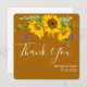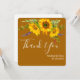 cartões de agradecimentos plano bonito Autumn/ Casamento outono apresenta buquê de girassol com cor d'água sobre fundo marrom ouro com blocos de texto personalizáveis brancos em fontes modernas