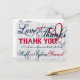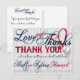 BASEBALL WEDDING OBRIGADO COM O CARTÃO POSTAL 2b-*Este obrigado que você posta é personalizado somente para um CLIENTE ESPECÍFICO. Esta é para eles. Outros nomes de saída estarão disponíveis. Sobre o design: O fundo é coberto por faixas verticais azuis e brancas finas. Vidro decorativo Texto no topo lê: Amor e Obrigados. A seguir, o texto decorativo vermelho que diz: OBRIGADO! em letras impressão. Uma nota personalizada em preto cursivo vai antes da assinatura. Vidro decorativo com o nome da noiva e do noivo. Uma pequena borda horizontal de pequenas bolas de baseball passa pelo fundo. O verso da placa de posto também tem embelezamentos. O texto de vidro do Amor e Obrigados, os casais chamam o texto de vidro e o divisor vertical de baseball. Este design está disponível conforme mostrado em azul e também em vermelho. Não se esqueça de personalizar as notas na frente e atrás no seu próprio texto. Edite as áreas de texto ou exclua/limpe-as para uma placa de vazio.
