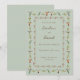 Cartão de salvar a data com um design de borda de beija-flor pintado à mão com beija-flores de Allen e Rufous e elementos florais em um fundo verde sálvia pálido.