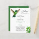 Uma disposição de casamento nova e natural, com um beija-flor verde vibrante em voo e uma borda de folhas exuberante. Esta design é ideal para casamentos de jardim, cerimônias de primavera ou celebrações inspiradas na natureza.