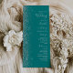 A borda esquerda deste elegante programa de casamento moderno apresenta um design brilhante falso prateado. O texto personalizável combina a escrita manual de cinzas prateadas, fontes copperplate e itálico em um fundo azul lacrimogêneo.