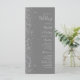 A borda esquerda deste elegante programa de casamento moderno apresenta um design brilhante falso prateado. O texto personalizável combina a escrita manual de cinzas prateadas, fontes copperplate e itálico em um fundo de cinza média.