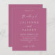 ** SATIN PAPER É PAPEL FINO. ATUALIZE O PAPEL PARA OBTER UM PAPEL MAIS ESPESADO. TEM UMA OPÇÃO PARA ENVELOPES. *** Economize dinheiro em convites com este convite menor que tem uma opção para envelopes. Prepare seus convidados para o maravilhoso casamento com seu convite para o casamento da Caligrafia MOD Rosa Púrpura. Quer um cartão maior? Veja a nossa coleção de casamento para ver as cartas. https://www.zazzle.com/collections/mod_calligraphy_color_invitation_suite-119262551690314347?rf=238937196885903396