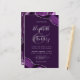 Uma design de cor d'água púrpura, aparada com brilho falso prateado, aparece em dois cantos deste elegante design. Personalize-o com os nomes dos casais em um guião de escrita manual de cinzas prateadas sobre um grande e abafado e roxo. Adicione os detalhes do casamento em copperplate e fontes itálicas em um fundo roxo profundo. O verso apresenta um design de agata prateado e roxo correspondente.