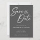 Cinzas escuras modernas com o estilo branco de escrita manual Salve o cartão de convite de Data. Este design apresenta uma fonte de estilo de caligrafia grande que você pode mudar sua cor de branco para qualquer outra cor que quiser. Você também pode personalizar todos os detalhes e cores neste design Salvar a Data.
