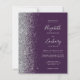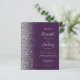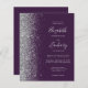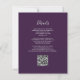 A borda esquerda deste elegante convite de casamento moderno apresenta uma borda falsa de prata. O texto personalizável combina a escrita manual de cinzas prateadas pálidas, fontes copperplate e itálico em um fundo roxo escuro. Adicione mais detalhes no verso, juntamente com um código QR para ajudar seus convidados a visitar seu site de casamento.