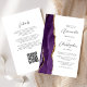 A borda esquerda deste elegante convite de casamento moderno apresenta uma cor d'água roxa, borda agitada, aparada com falso brilho dourado. O texto personalizável combina o script de cinza de carvão e as fontes sans serif em um fundo branco. O verso fornece espaço para detalhes do casamento em um fundo branco sólido, junto com um código QR que os convidados podem digitalizar para visitar seu site e RSVP, o que economiza o custo de imprimir e enviar cartões RSVP separados.