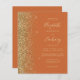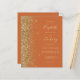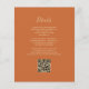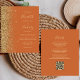 A borda esquerda deste elegante convite de casamento moderno apresenta uma borda falsa de ouro. O texto personalizável combina manuscrito pálido de cor dourada, fontes copperplate e itálico em um fundo laranja queimado. O verso fornece espaço para detalhes do casamento em um fundo laranja queimado sólido, junto com um código QR que os convidados podem digitalizar para visitar seu site e RSVP.