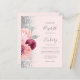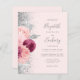 A borda esquerda deste elegante convite de casamento moderno apresenta um buquê floral em tons de burgundy e rosa-pincel, aparados com folha de falso prateado e folhagem de falso brilho e borrifados com brilho de prata. O texto personalizável combina o script de escrita manual de cinzas, as fontes em copperplate e itálico em um plano de fundo de blush. Adicione mais detalhes no verso, juntamente com um código QR para ajudar seus convidados a visitar seu site de casamento.