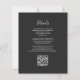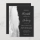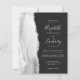 A borda esquerda deste elegante convite de casamento moderno apresenta uma cinza e uma aquarela branca, aparada com falso brilho prateado. O texto personalizável combina escrita manual, placa de impressão e fontes itálicas em cinzas prateadas em um fundo fora do preto. O verso fornece espaço para detalhes do casamento em um fundo fora do preto sólido, junto com um código QR que os convidados podem digitalizar para visitar seu site e RSVP.