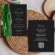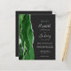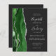 A borda esquerda deste elegante convite de casamento moderno apresenta uma coloração aquosa verde, borda agitada com falso brilho prateado. O texto personalizável combina manuscrito, fontes em copperplate e itálico em cinzas prateadas leves em um fundo fora do preto. Adicione mais detalhes no verso, juntamente com um código QR para ajudar seus convidados a visitar seu site de casamento.