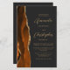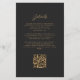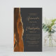 A borda esquerda deste elegante convite de casamento moderno apresenta uma laranja queimada e uma aquarela ferrugem borda agitada com falsa brilho de ouro. O texto personalizável combina o script dourado e as fontes sans serif em um fundo preto de slate. O verso fornece espaço para detalhes do casamento em um fundo preto de slate sólido, junto com um código QR que os convidados podem digitalizar para visitar seu site e RSVP, o que economiza o custo de imprimir e enviar cartas RSVP separadas.