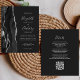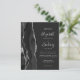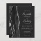 A borda esquerda deste elegante convite de casamento moderno apresenta uma coloração aquosa preta e borda agitada com falso brilho prateado. O texto personalizável combina manuscrito, fontes em copperplate e itálico em cinzas prateadas leves em um fundo fora do preto. Adicione mais detalhes no verso, juntamente com um código QR para ajudar seus convidados a visitar seu site de casamento.