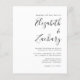 Este simples convite de casamento moderno apresenta texto viva preto sobre fundo branco. Adicione os nomes da noiva e do noivo na caligrafia de escrita manual do na moda e os detalhes na fonte sans serif. O verso fornece espaço para detalhes do casamento em um fundo preto sólido, junto com um código QR que os convidados podem digitalizar para visitar seu site e RSVP.