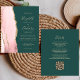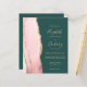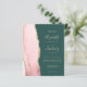 A borda esquerda deste elegante convite de casamento moderno apresenta uma cor-de-água rosa pincelada com borda falsa de ouro. O texto personalizável combina uma escrita manual pálida e dourada, fontes em copperplate e itálico em um fundo verde esmeralda. Adicione mais detalhes no verso, juntamente com um código QR para ajudar seus convidados a visitar seu site de casamento.